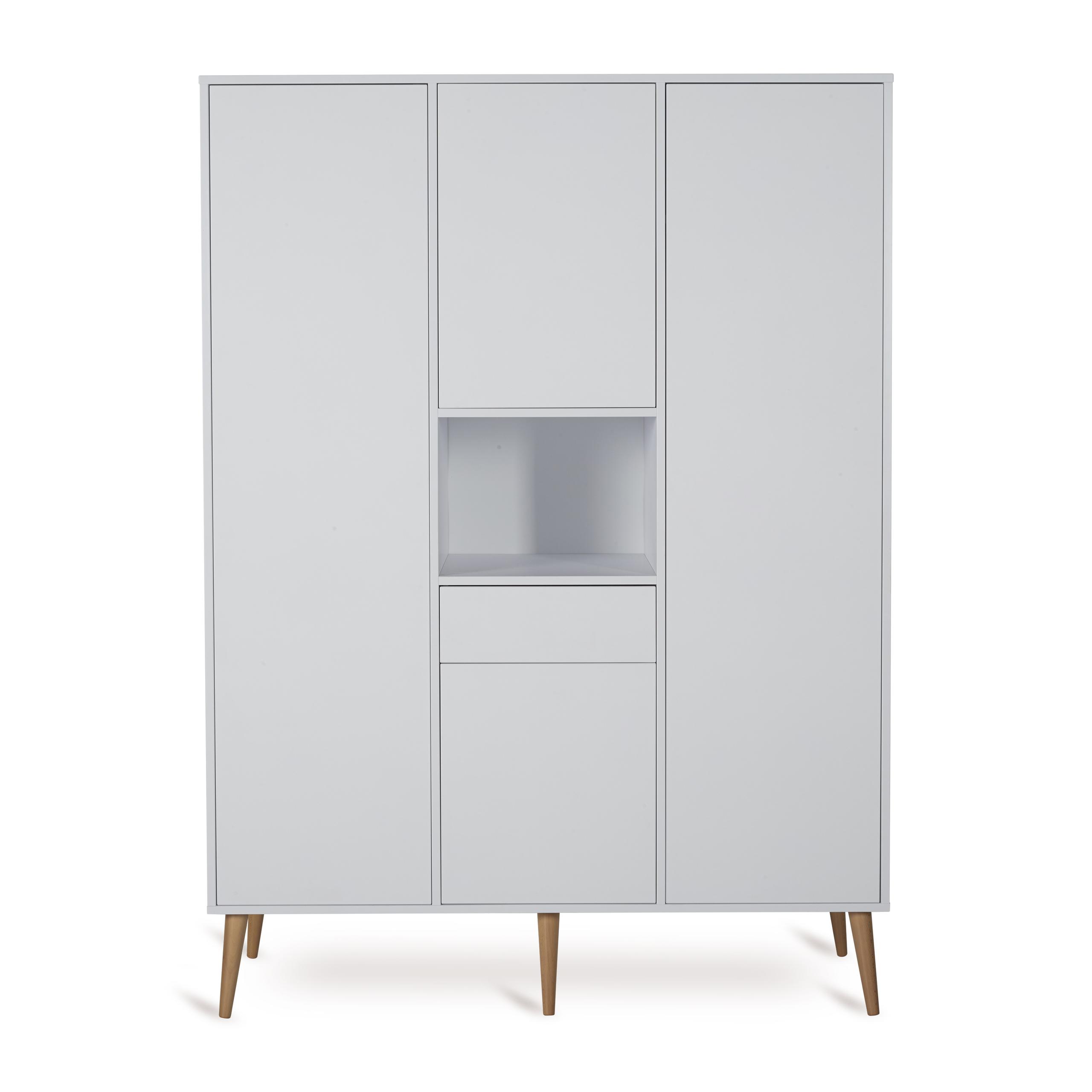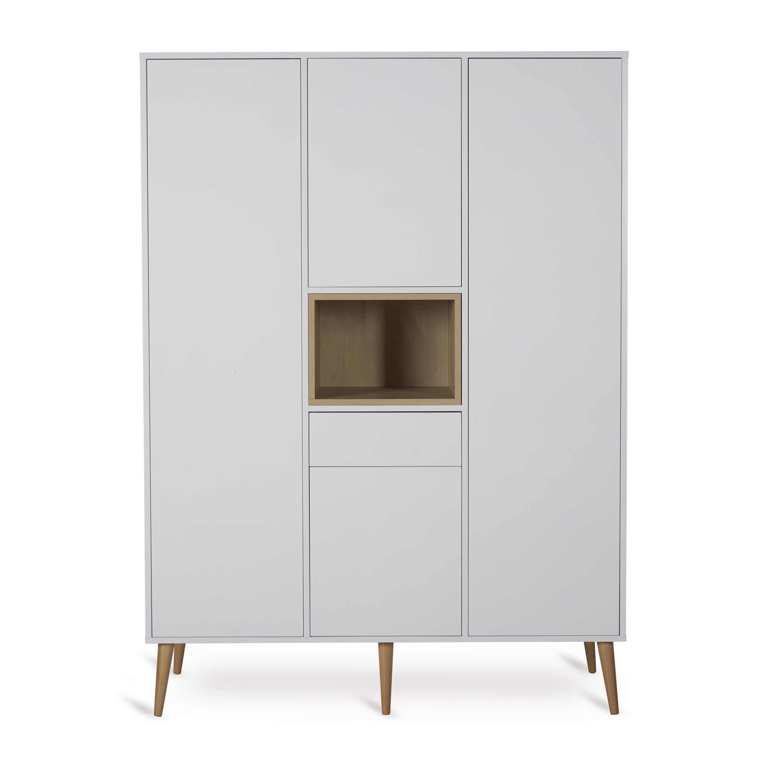 Discover the space and elegance of the Cocoon Kast XL. This large, stylish design wardrobe offers an abundance of storage space, allowing you to keep the nursery perfectly organized. With no less than seven convenient shelves and four 45 cm clothes rails, you can neatly store clothing, accessories, and other supplies. The wardrobe also features a 14 cm high drawer and four doors for added functionality. Personalize your cabinet with niches in different colors to create a unique look (art.54F01-04-0X).
