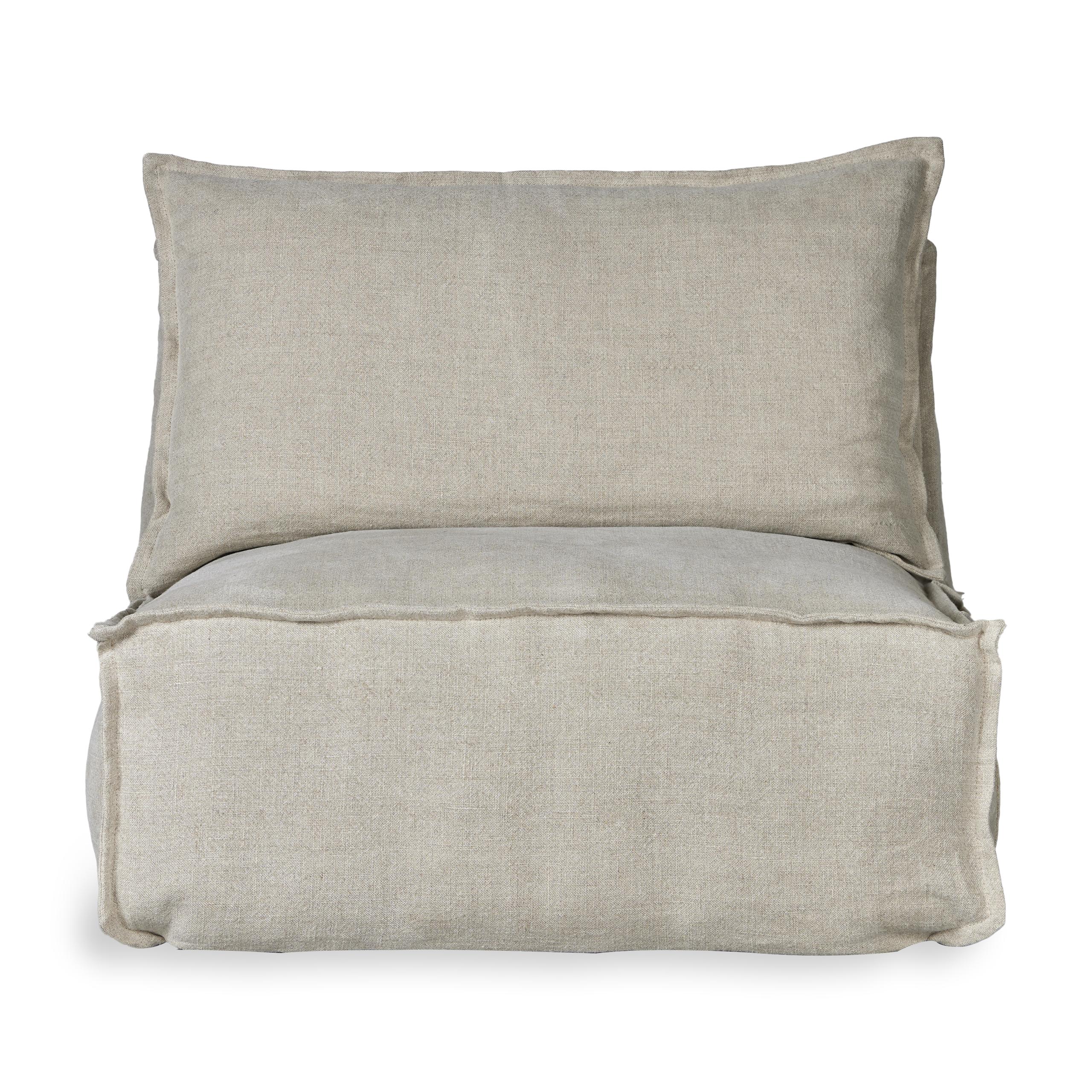 The Linen Lounger is a generously shaped lounge chair, fully upholstered in soft, breathable linen. With its low profile and included oversized cushion, it radiates calm and sophistication – perfect for those who value both comfort and style.