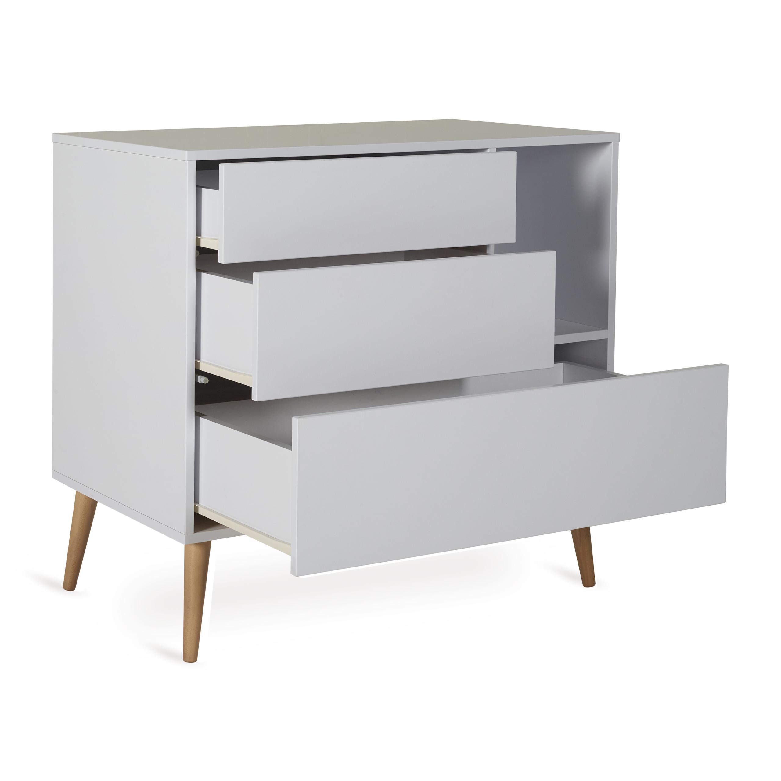 Laissez-vous inspirer par la polyvalente Cocoon Commode. Cette commode au design moderne est votre toile pour la créativité dans la chambre d'enfant. Les tiroirs sans poignée s'ouvrent d'un simple poussé grâce au système push. Personnalisez la commode avec des niches de différentes couleurs pour créer une apparence unique (art. 54F01-05-0X). De plus, une extension est disponible en option, ce qui transforme la commode en une table à langer pratique (art. 54F01-05-0X).