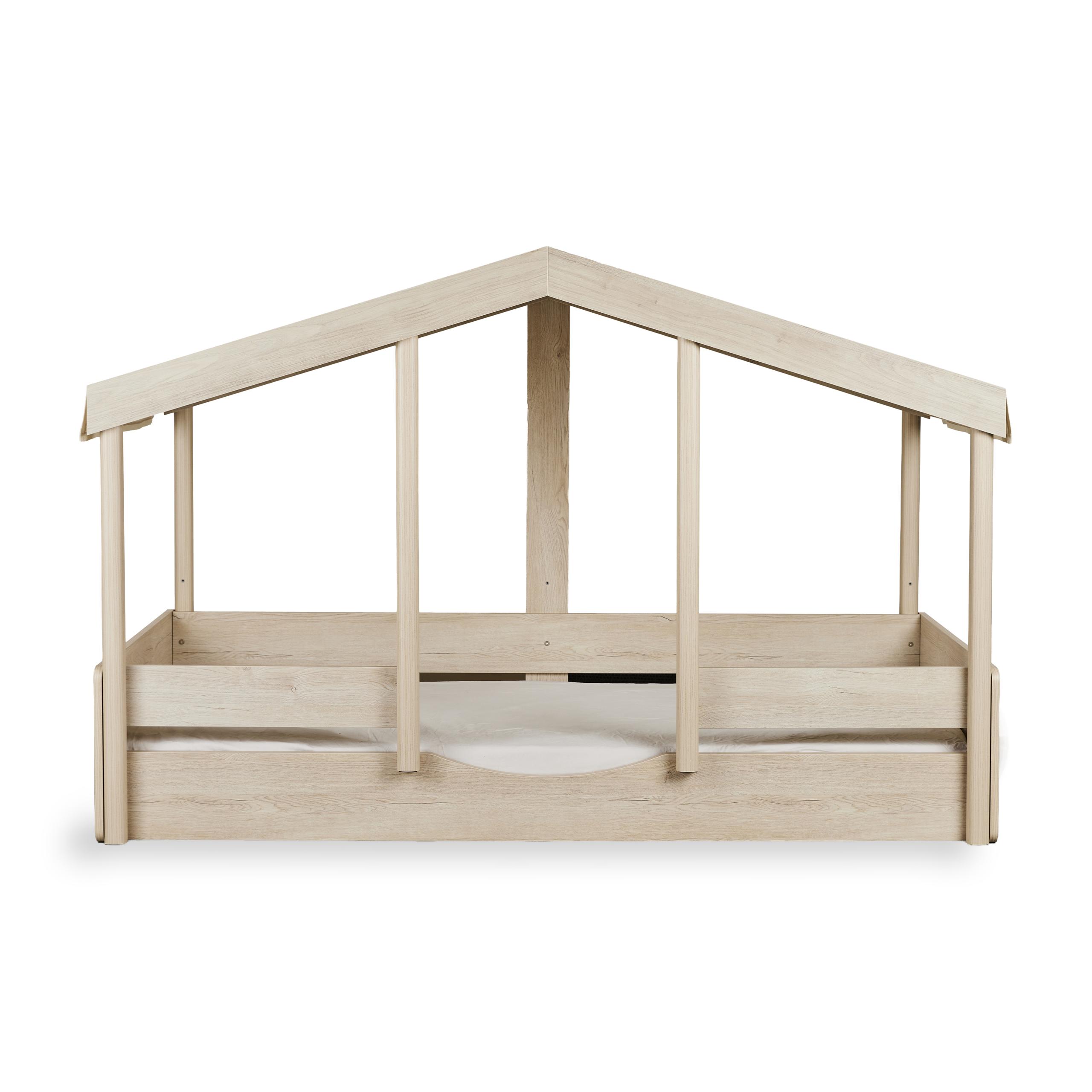 Le lit Montessori est un lit maisonnette chaleureux où aventure et repos se rejoignent. Avec sa forme de maison charmante, vous créez immédiatement une ambiance ludique dans la chambre d'enfant, où votre petit se sent complètement chez lui.Choisissez la configuration qui vous convient. Optez pour le style Montessori, bien bas au sol, et offrez à votre enfant la liberté de monter et descendre du lit de façon autonome. Ou choisissez la configuration sur pieds pour un effet plus aéré. Complétez la maisonnette avec un toit en tissu vendu séparément. Choisissez parmi les douces couleurs Butter ou Chocolat et tendez-le facilement sur le cadre de toit avec du velcro. Vous créez ainsi une sécurité supplémentaire et un petit coin pour de doux rêves.