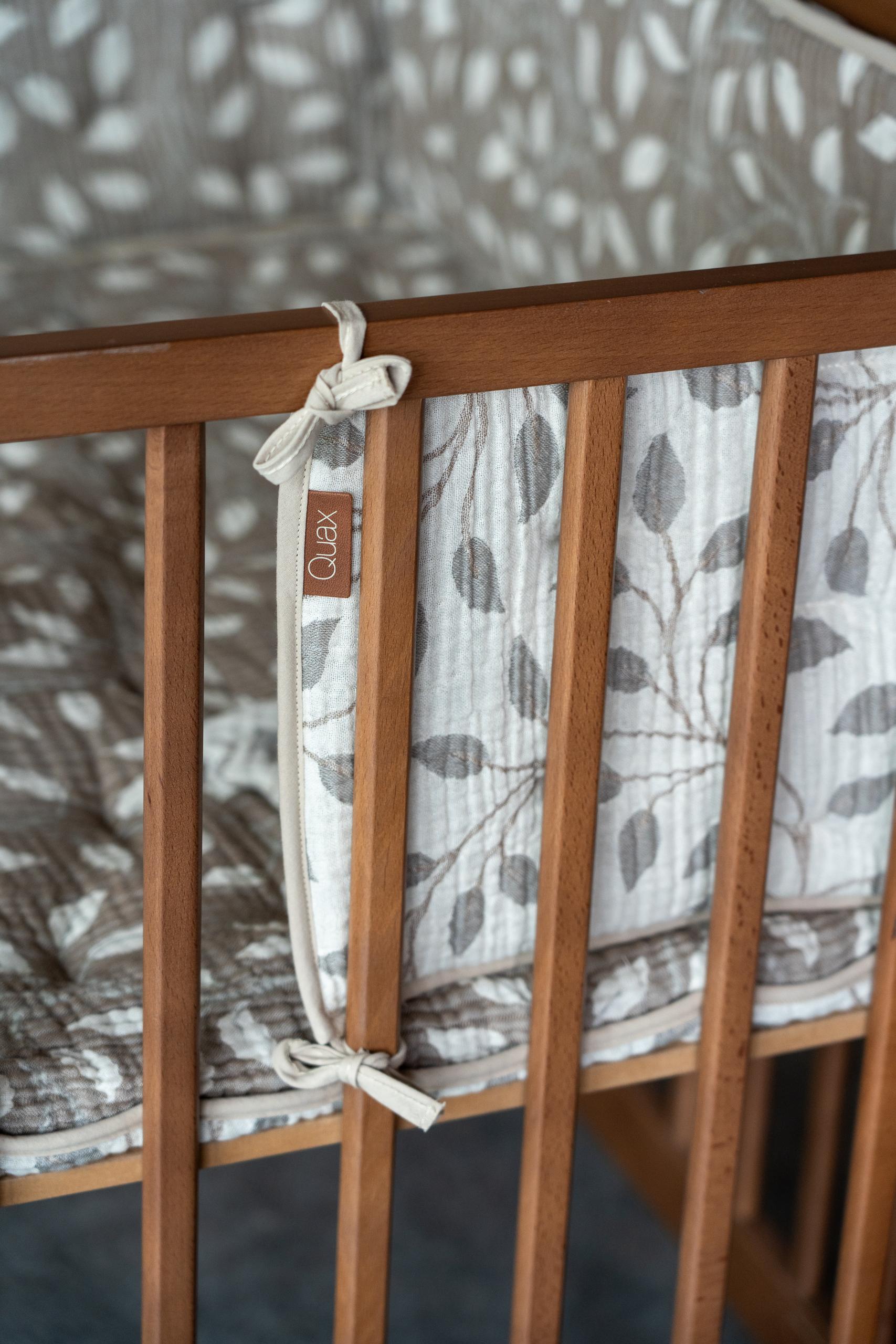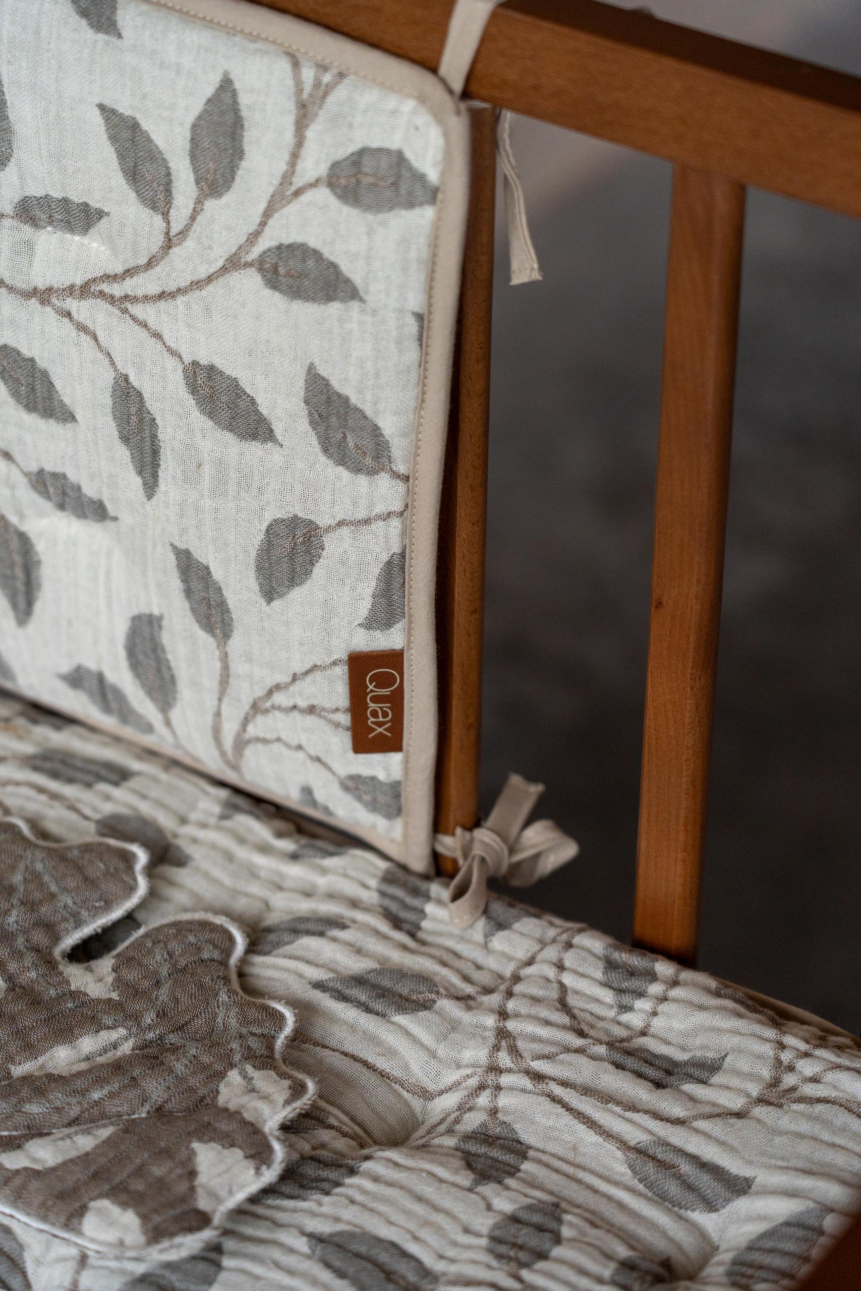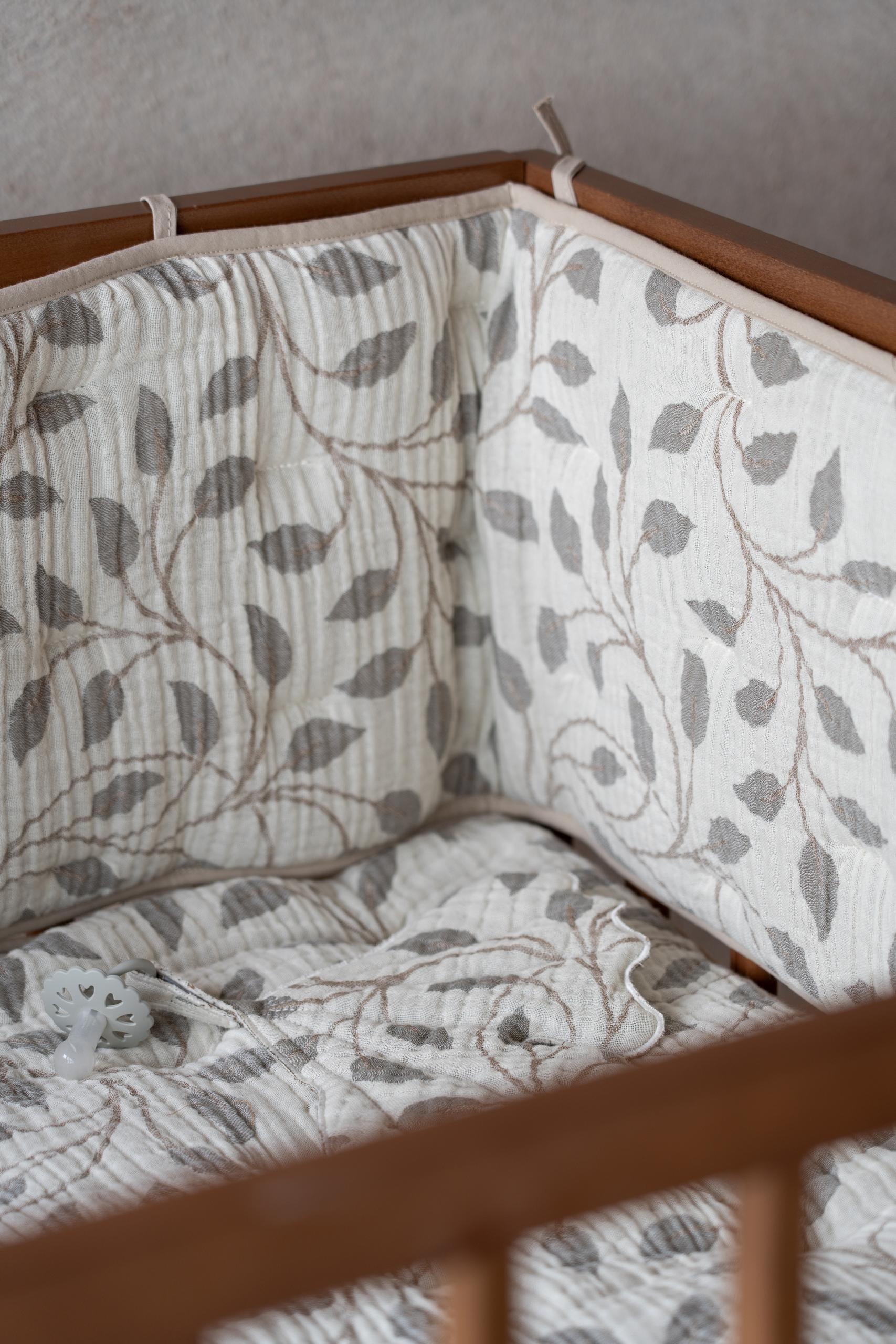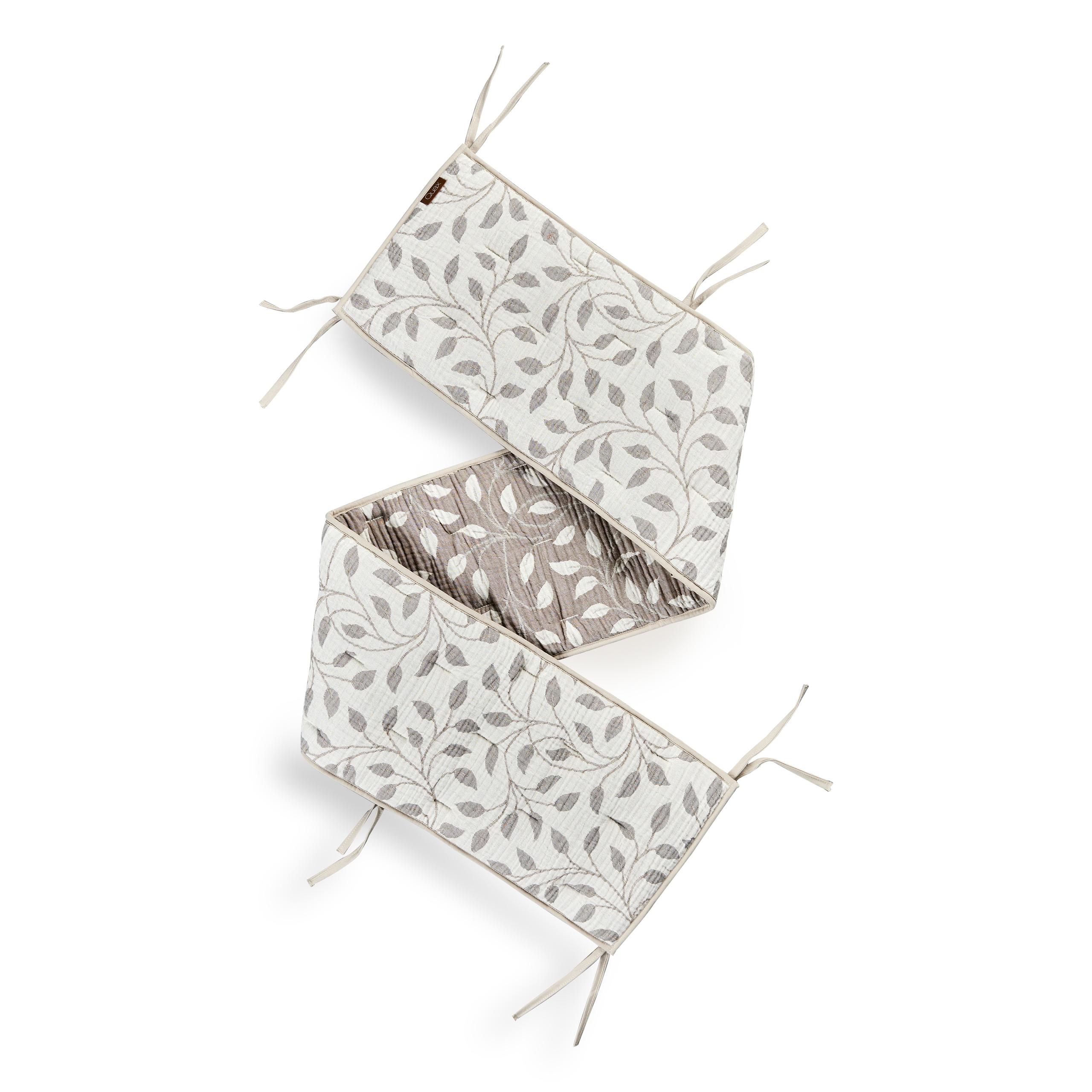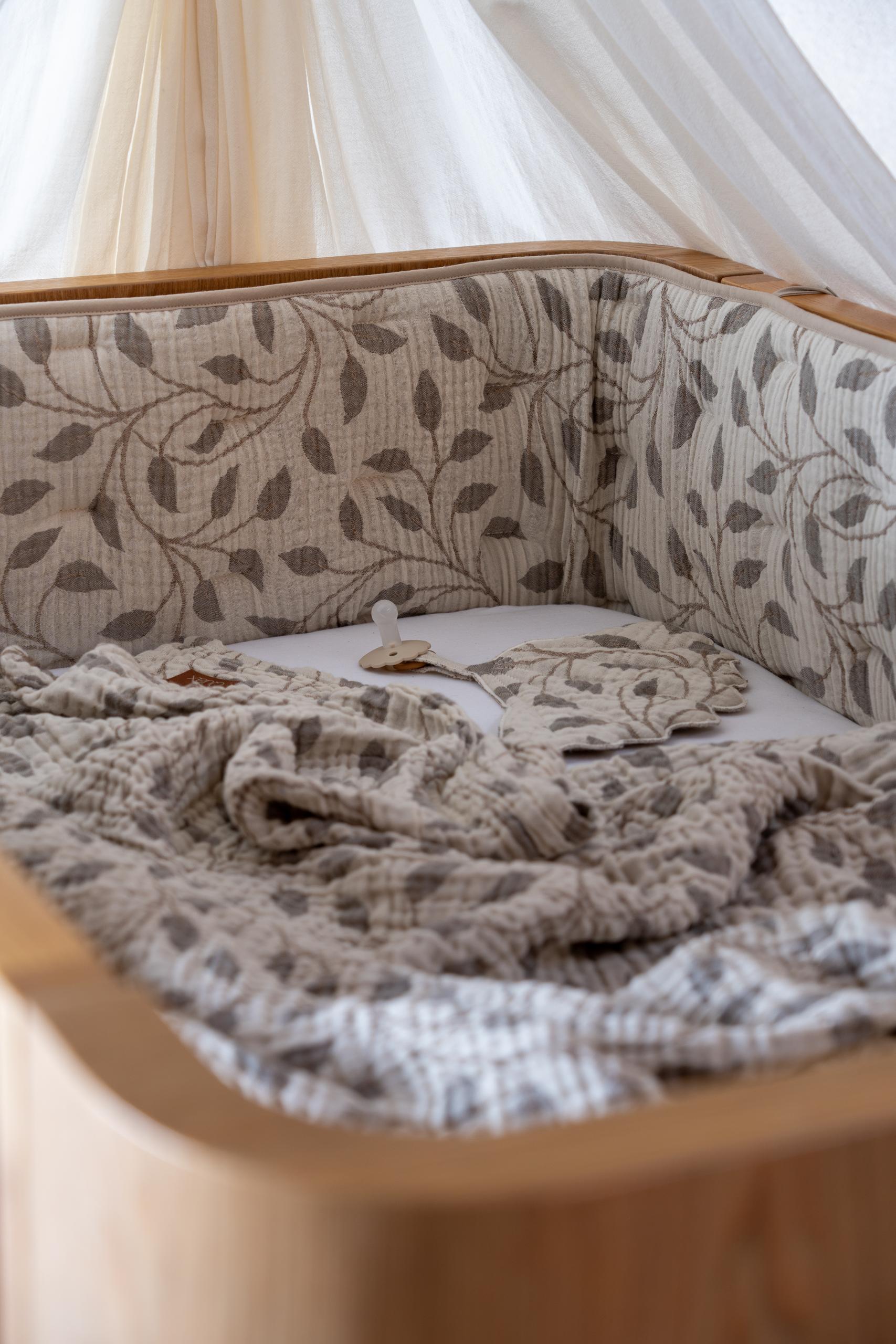 De omranding is aan beide zijden te gebruiken, met een mooi design aan elke kant. Kies uit de prachtige kleuren warm clay, subtiel blossom of een zacht geel streepje, vervaardigd uit zachte muslin katoen, voor een luxe en comfortabele uitstraling.
