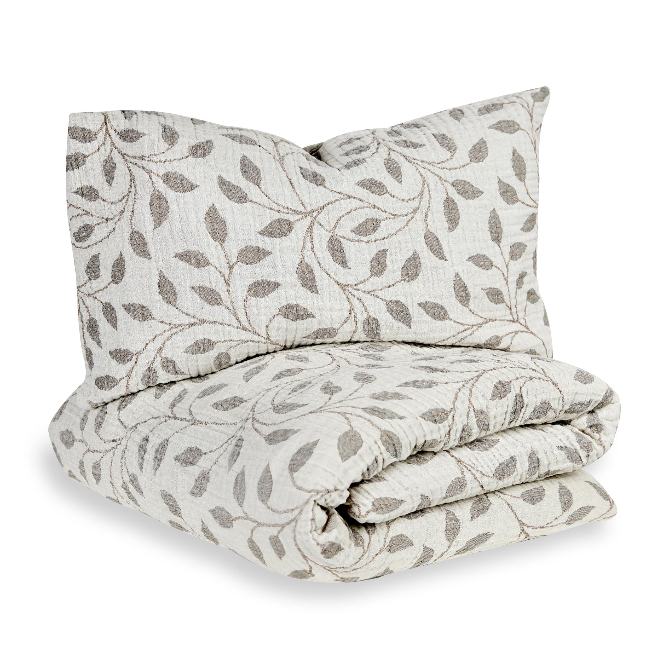 De set is verkrijgbaar in drie tijdloze varianten: warme clay en subtiele blossom in zachte muslin, of verfijnde stripes met een lichtgeel streepje. Elk ontwerp brengt rust en elegantie in de kinderkamer.
