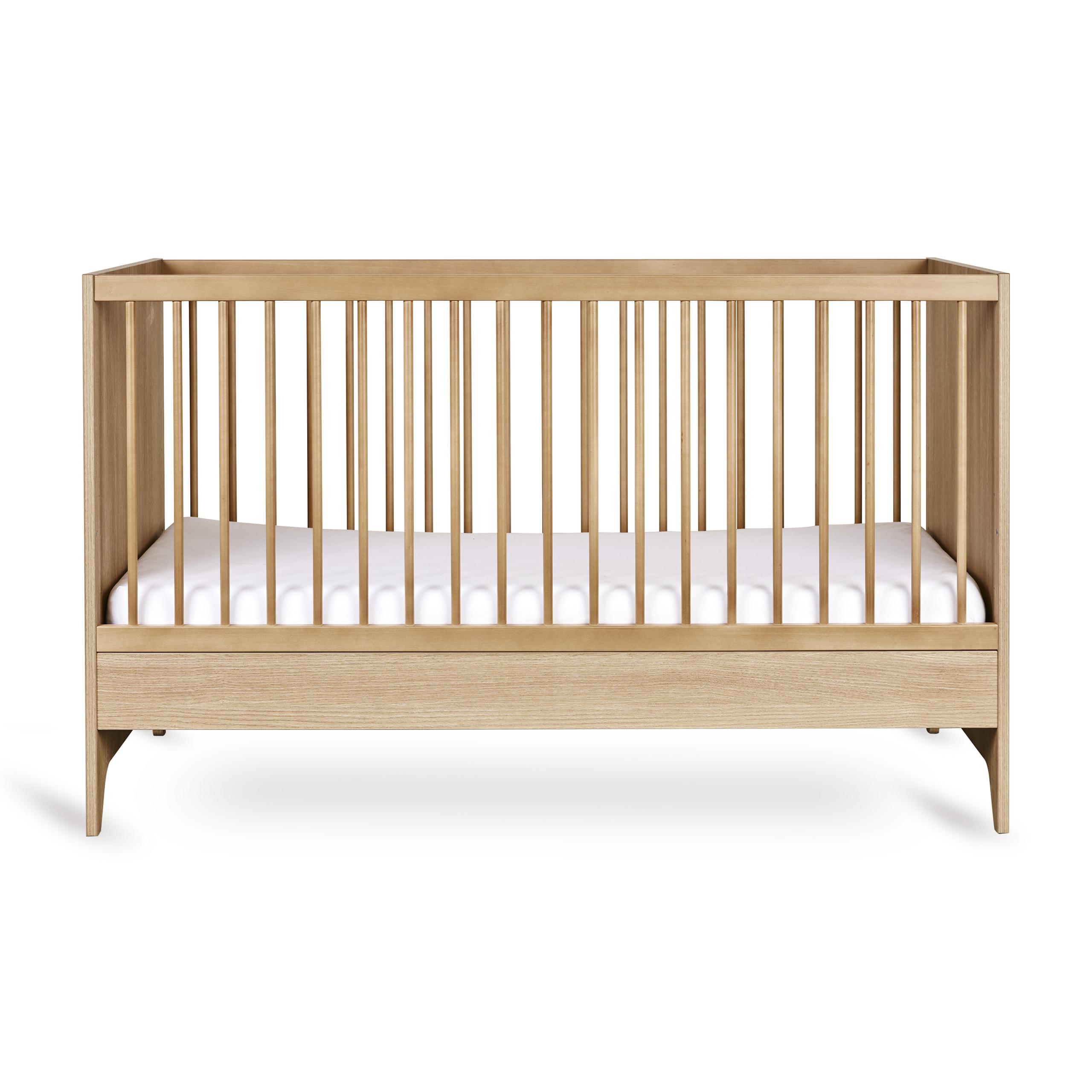 Het groeit moeiteloos mee met de reis van je kleintje: het bed transformeert eenvoudig tot een half-open peuterbedje door één van de spijlerzijdes te vervangen door de inbegrepen uitvalbeschermer. Deze sluit naadloos aan op het ontwerp en biedt extra veiligheid zonder afbreuk te doen aan de lichte, monochrome uitstraling van de Tsugi collectie.